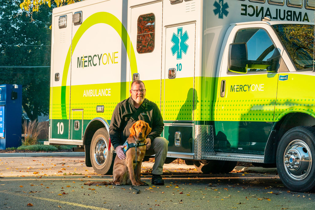 K9 “Nitro” with handler Paramedic Jordan Schmitz for Pella Ambulance